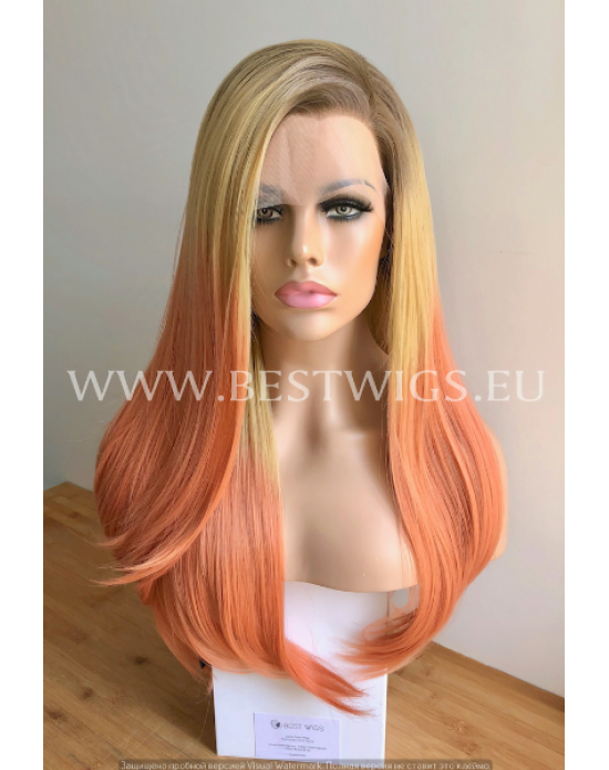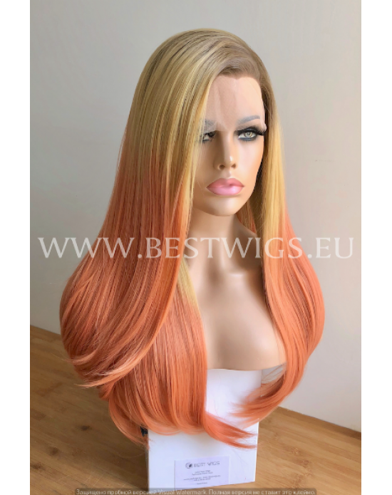 Synthetic lace front wig Stright Gold Peach long hair (roots)