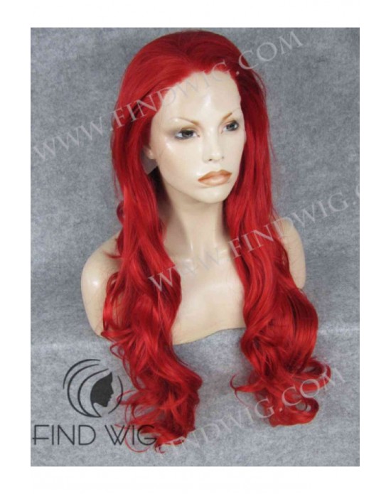Synthetic lace front wig Wavy red long hair
