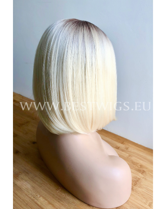 Synthetic lace front wig Straight blond short hair / Rooted Bob style