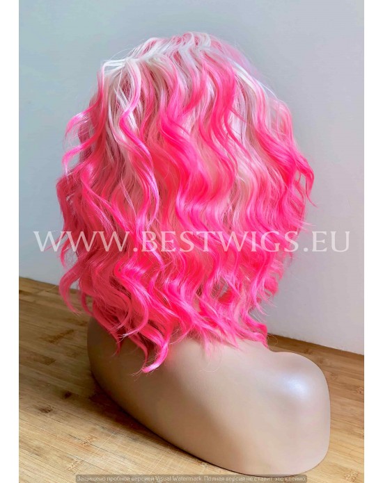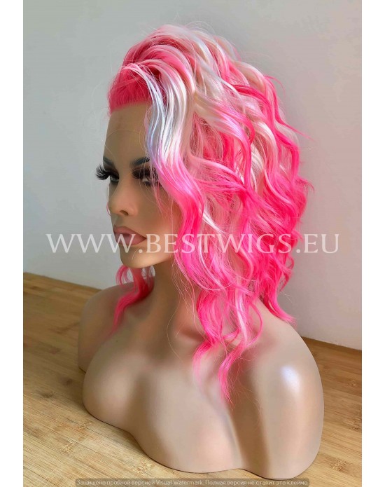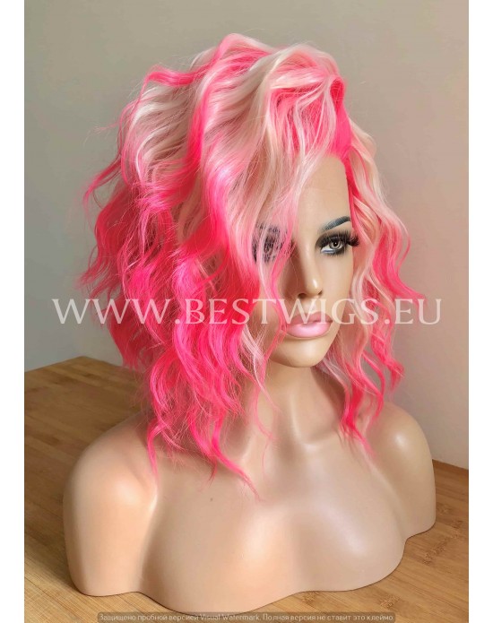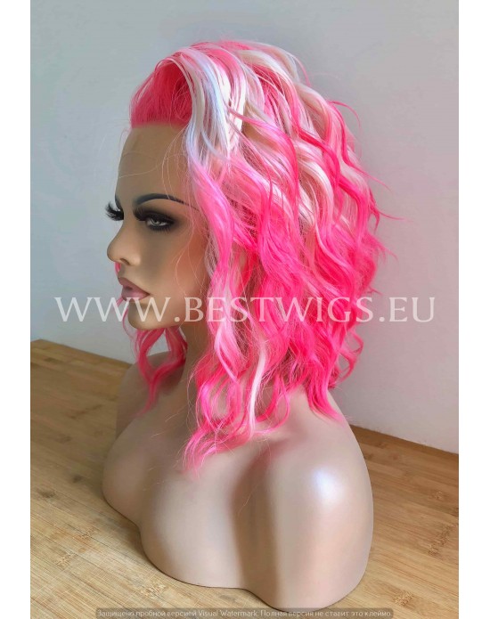 Synthetic lace front wig Curly Pink Blond hair