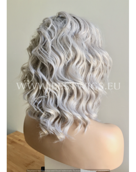 Synthetic lace front wig Wavy grey medium hair with dark roots