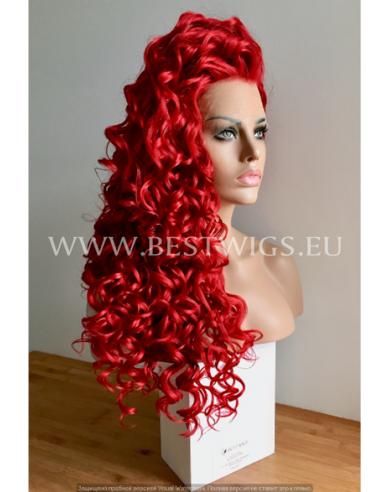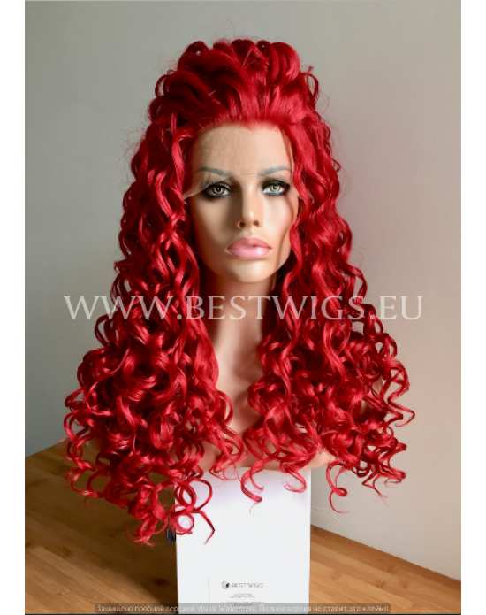 Synthetic lace front wig Curly red long hair