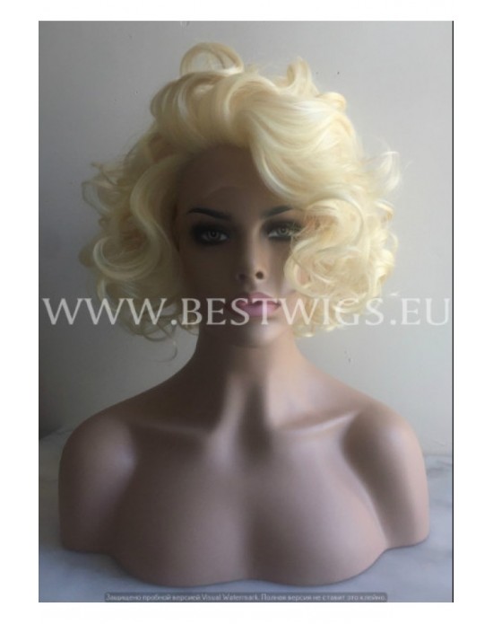Synthetic lace front wig Wavy blond short hair