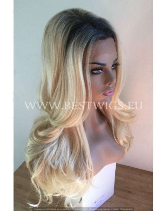 Synthetic lace front wig Wavy blond long hair with dark roots