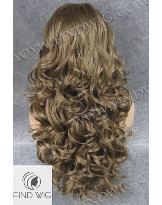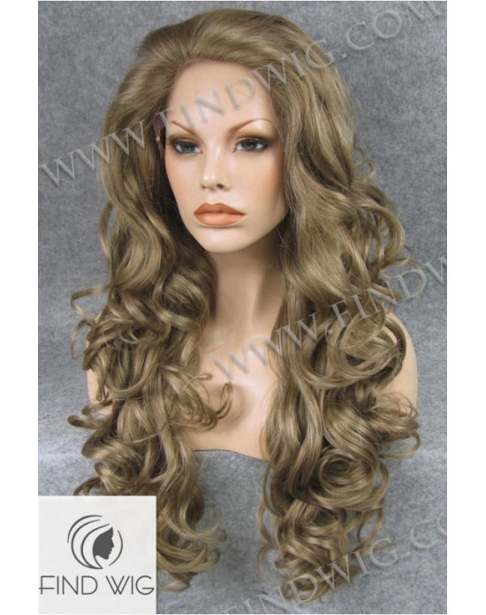 Synthetic lace front wig Wavy chestnut ash-grey colored long hair