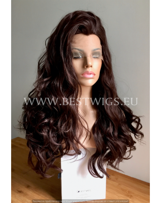 Synthetic lace front wig Wavy brown long hair
