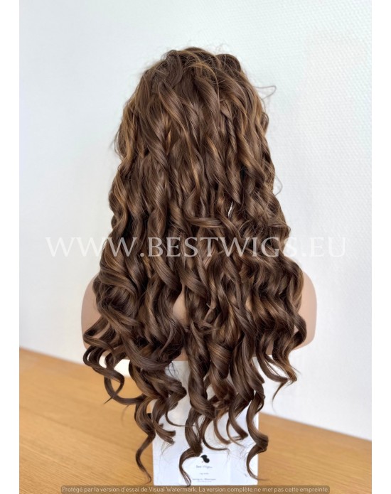 Synthetic Lace Front Wig Wavy Chestnut-Colored Long Hair