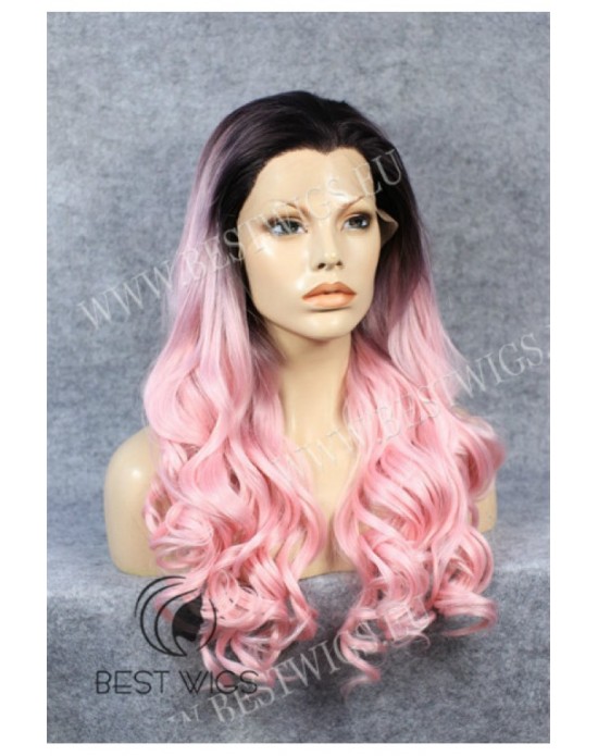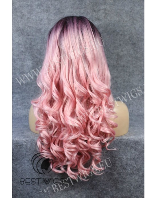 Synthetic lace front wig Wavy rose long hair with dark roots