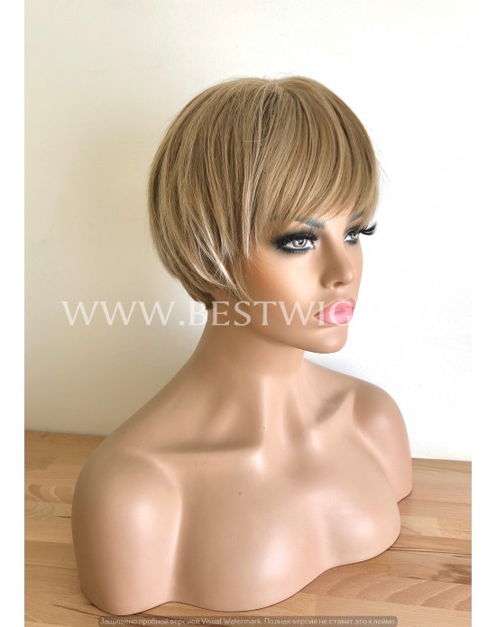Synthetic Machine-Made Short Ash Blonde Wig