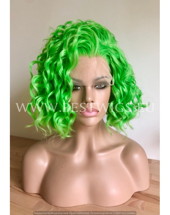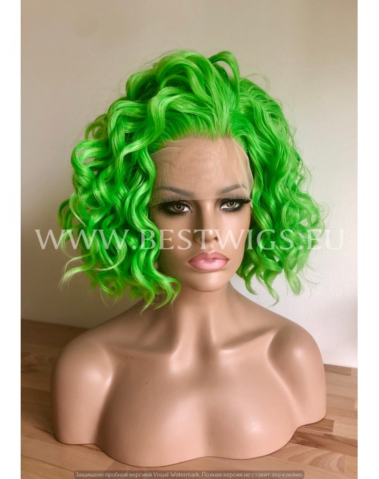 Synthetic lace front wig Wavy Electric Green