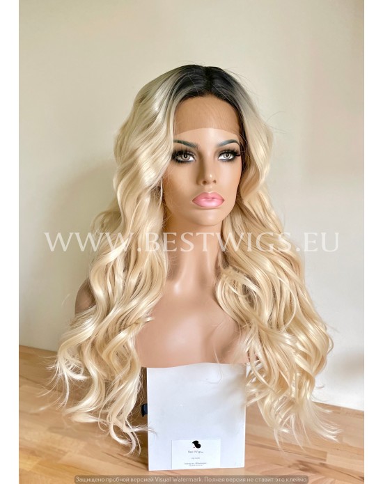 Rooted Glod Blonde Synthetic Lace Front Wig Beach Waves