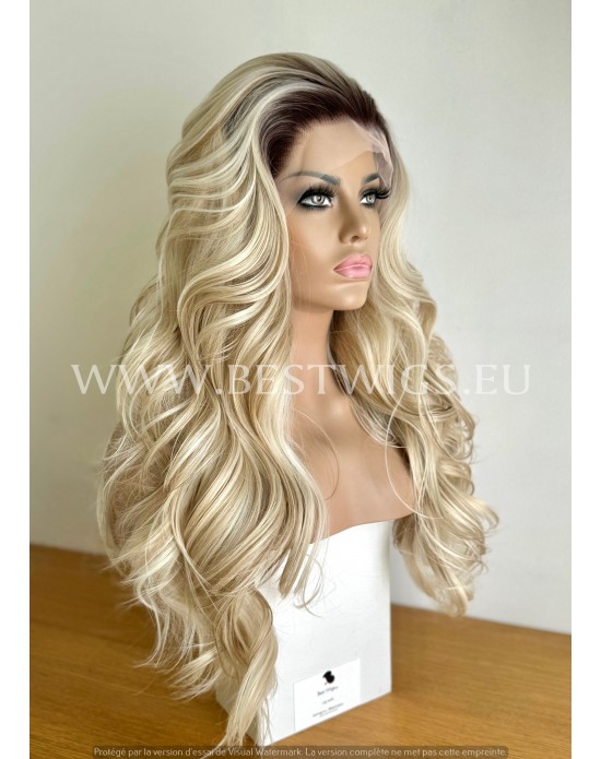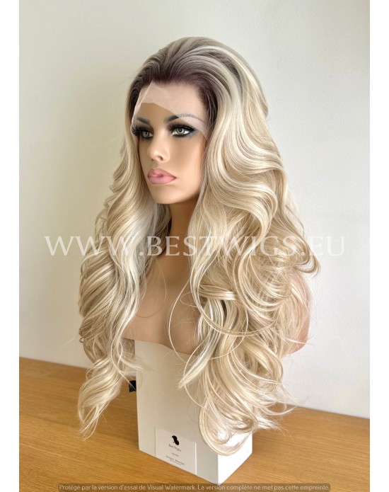 Rooted Blonde Wavy Synthetic Lace Front Wig