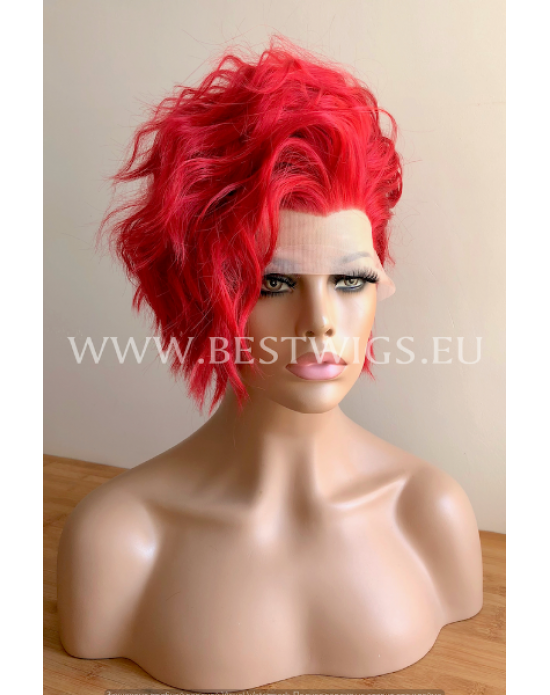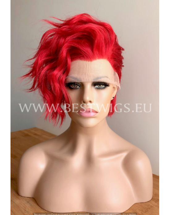 Synthetic lace front wig Wavy Bright Red short hair
