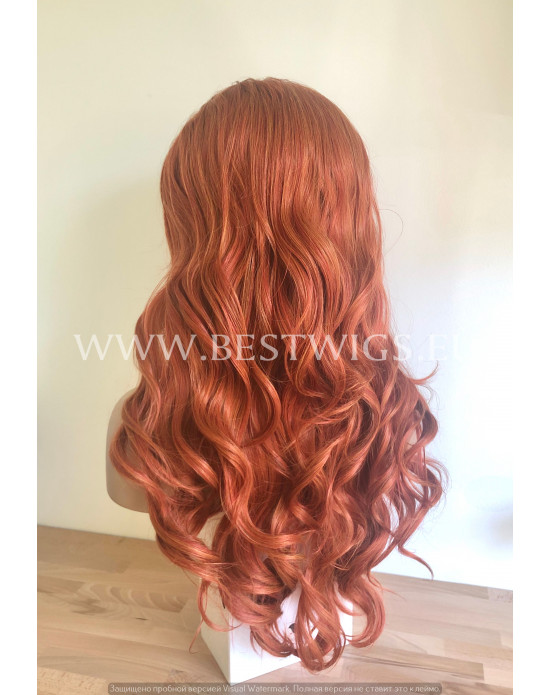 Synthetic lace front wig Wavy red long hair / Free parting